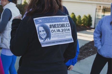 I suppose that is why so many of us can relate to her. For the Megs Miles Run, some were pledging to do what they could while others said they would finish her run with the 12 miles she had left to complete. Some children said they would run a mile for each of Meg’s children. Other victims of DUI-related crashes who could not run anymore, walked. Some walked for hours on crutches for Meg. So many others who were never runners decided to run this day. In the words of a Megs Miles supporter “This Saturday, January 18, 2014, no matter what your distance, run for Meg. Take in the fresh air, be aware of your surroundings, keep your headphones on low, feel the heaviness in your lungs, the soreness in your legs, and be grateful for it–for all of it. The sweat, the pain, the wind, the cold…everything. Be grateful for that moment.”